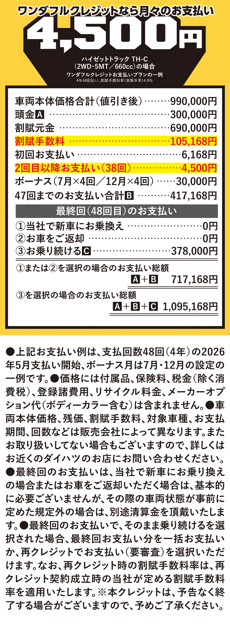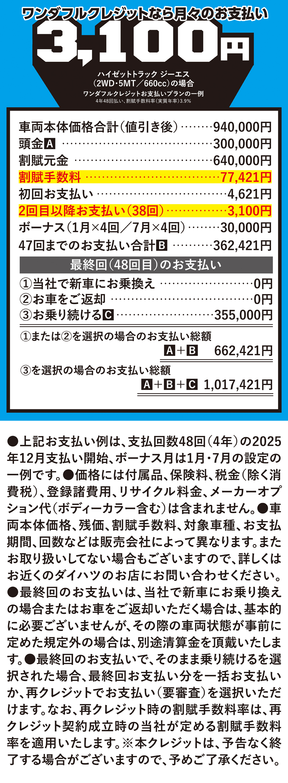 ダイハツの残価設定型クレジット「ワンダフルクレジット」を使えば、月々の支払いがとてもラクラク。