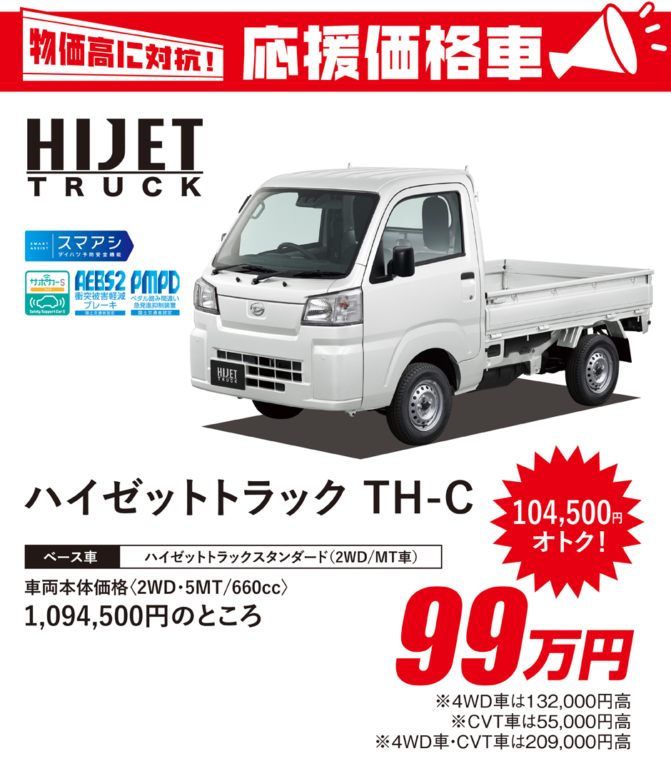 物価高に対抗!応援価格車「ハイゼットトラック」