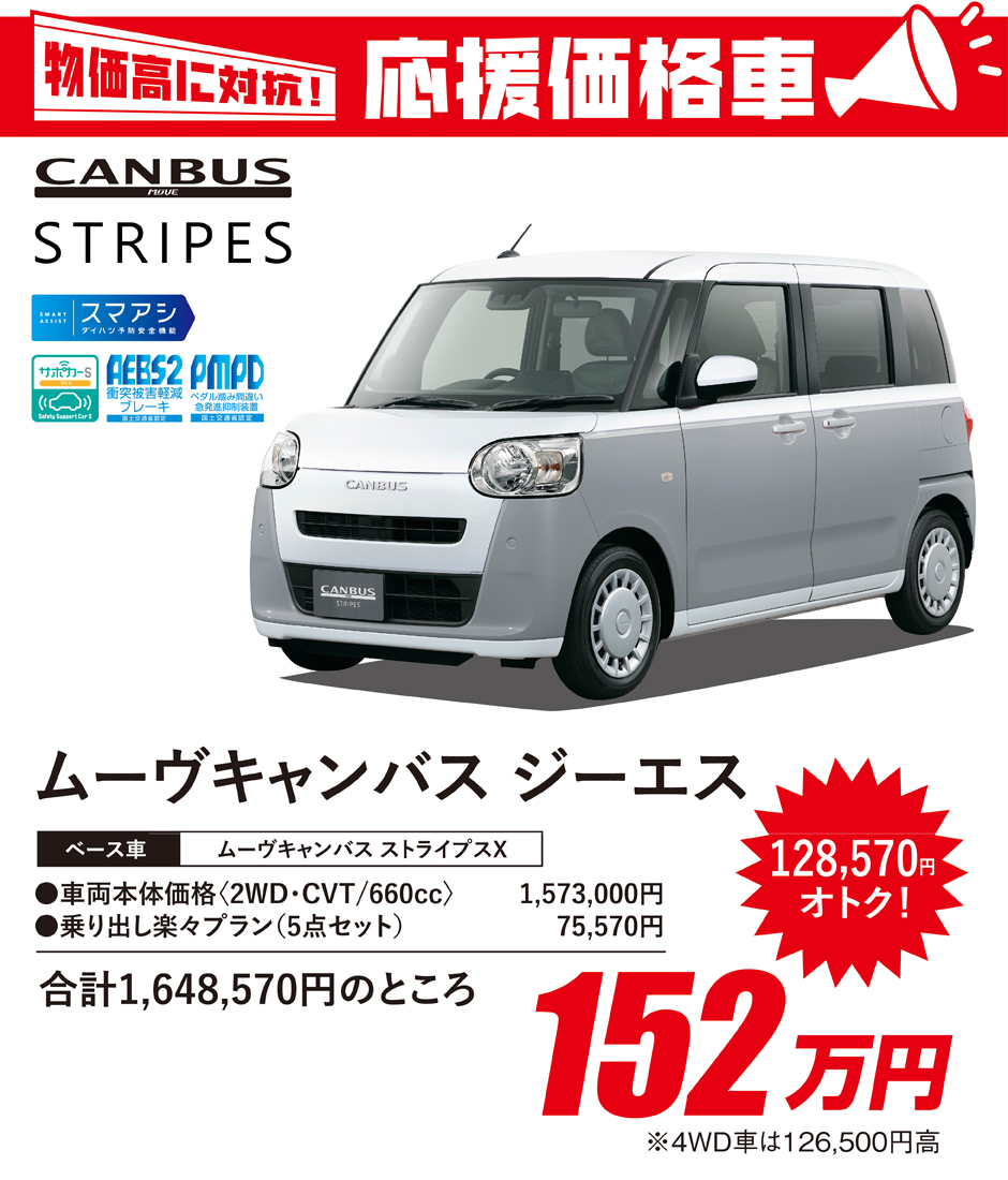 物価高に対抗!応援価格車「ムーヴキャンバス」