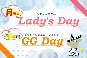 毎週月曜日はLady's Day!毎週木曜日はGG Day!