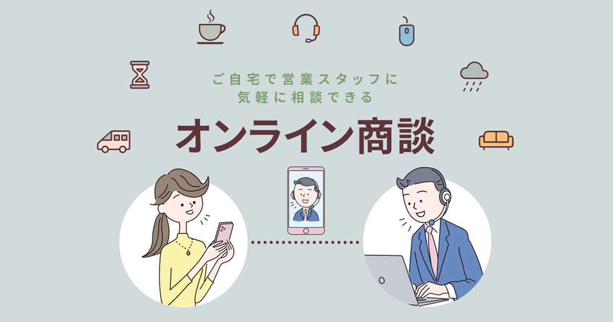 ご自宅で営業スタッフに気軽に相談できるオンライン商談を実施しております。ぜひお気軽にお申込み下さい。