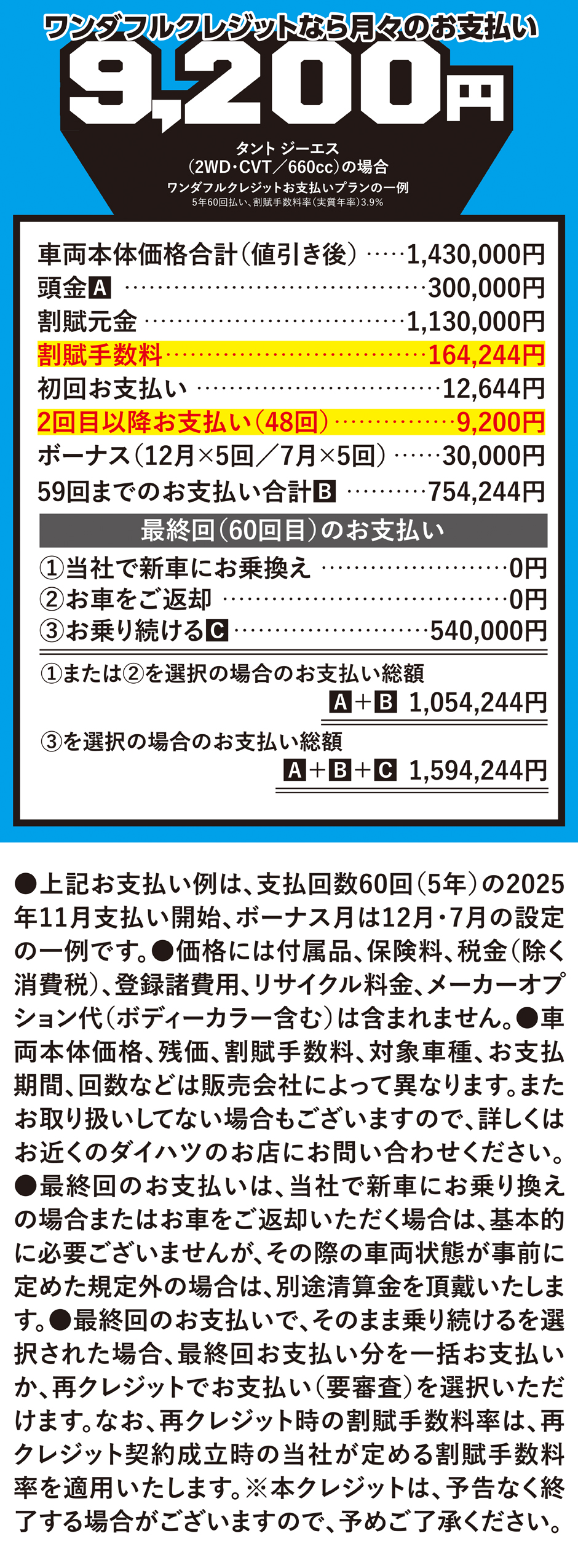 ダイハツの残価設定型クレジット「ワンダフルクレジット」を使えば、月々の支払いがとてもラクラク。